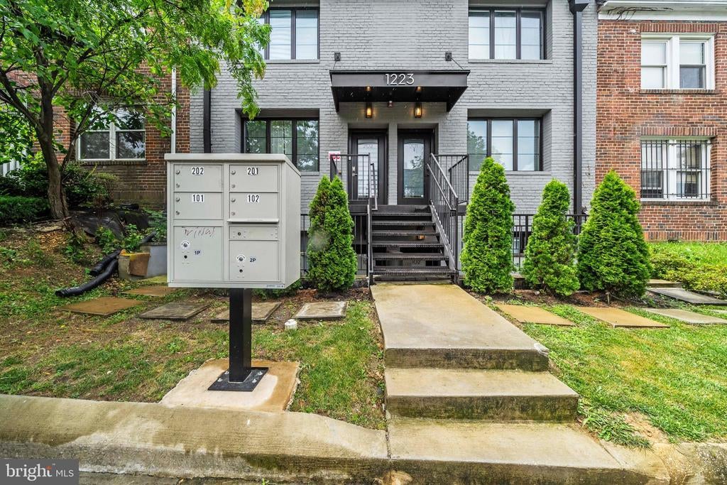 Modern Loft-Style Condo Near Union Market. Welcome to this striking 2-bedroom, 2-bath, 1585 sq ft condo built in 2022, blending modern design with flexible living. The open-plan main level features a marble-accented kitchen, dining, and living space beneath soaring double-height ceilings, framed by dramatic floor-to-ceiling windows that flood the home with natural light. DuChteau wide European white oak floors run throughout, adding warmth and elegance. One bedroom and a full bath are conveniently located on the main level. Upstairs, the spacious primary suite includes a spa-like bath with a freestanding tub, a versatile mezzanine office, and abundant storage with custom Elfa closet systems. Generous closet space throughout and off-street parking for one car complete the offering. Just steps from the vibrant Union Market with its buzzing restaurants and bars, this is urban living at its finest.