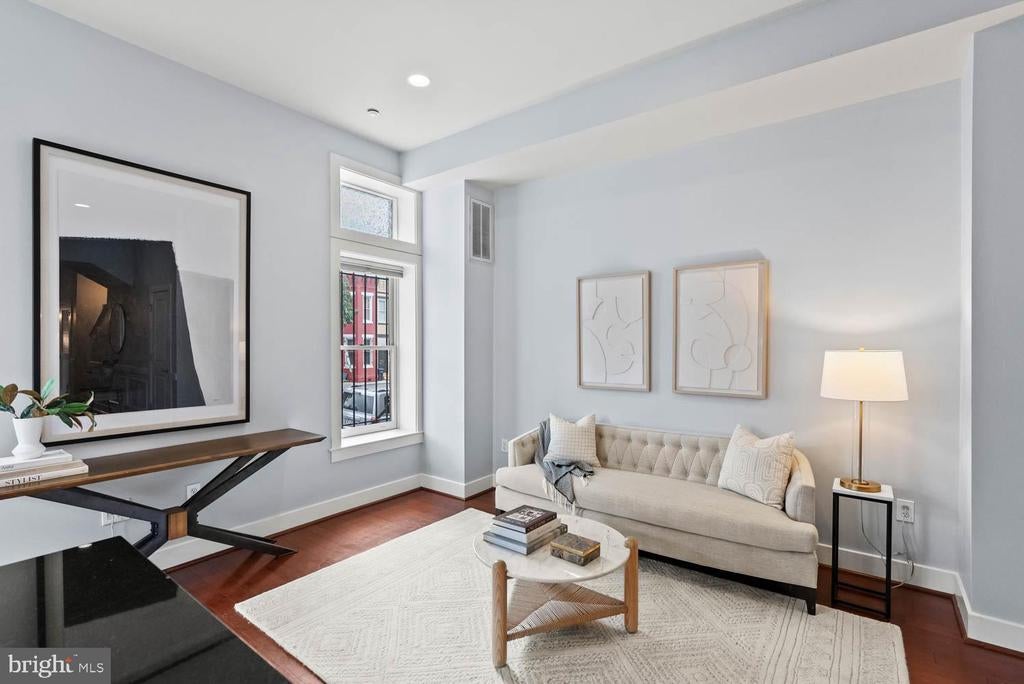 902 T Street Condos | 2 Bed | 2 Bath | 1,200 Sf | 1 Storage Unit | Building: U St Historic District, Boutique Building, Built in 1895, 3 Units, Large Front Yard w/ Privacy Landscaping | Unit: Open Living Layout w/ Dining Alcove, Large Windows w/ Ample Natural Light, Custom Built-In Shades, High Ceilings & Crown Moldings, Recessed Lighting Throughout, Walk-In Closet w/ Built-In Storage, Full-Size Washer & Dryer, Hardwood Flooring | Kitchen: Peninsula Island w/ Storage, Built-In Cabinetry w/ Undermount Lighting, Mosaic Tile Backsplash, Quartz Countertops, Stainless Steel Appliances, French Door Refrigerator w/ Bottom Freezer, 5-Burner Gas Range, Full-Size Dishwasher | Baths: Frameless Glass-Enclosed w/ Glass Tiled Walls, Built-In Niche & Linen Storage in Primary Suite, Glass-Enclosed Stall Showers, Vanities w/ Storage, Tiled Flooring