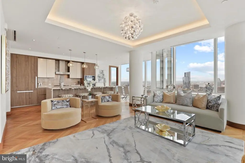 Breathtaking Panoramic views of the Inner Harbor from the most Luxurious Building, located in the most coveted Zip Code in Baltimore City, the Four Seasons Private Residences in Harbor East. This 2 Bedroom 2 Bathroom Residence, located on the 24th Floor, features an inviting Open Floor Plan with sprawling Chevron Walnut Wood Floors throughout and floor to ceiling windows in every room to ensure maximum exposure to sunlight and gorgeous views. The Custom gourmet Kitchen is perfectly appointed with Miele appliances and centered around an elegant waterfall marble countertop island that is open to the living space which includes an outdoor Patio where the dramatic views continue. The Primary suite is complete with dressing room and lavish en-suite marble bath w/ large walk-in shower and stand-alone soaking tub. Four Seasons 5-Star Amenities include a Residence Only front entrance and resident only amenities level which encompasses the entire 28th floor and the views continue. This private resident level includes an infinity edged Salt Water indoor heated pool with an open air rooftop Sundeck, a Sauna - complete with its own Harbor Views, fitness room, a large gathering and event space which consists of large dining area, lounge spaces, conference room, billiard area, kitchen space, indoor and outdoor fireplaces, multiple outdoor seating spaces, outdoor grilling area, and an outdoor AstroTurf dog walking space. Four Seasons Private Residences Baltimore, a seamless blend of sophisticated style, lavish amenities, and the exemplary service of the world's preeminent hotelier.