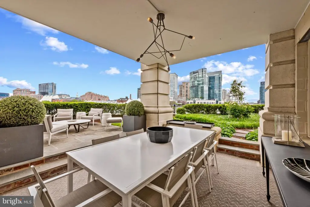 Experience waterfront luxury at its finest in this exceptional 3-bedroom, 2.5-bath, 2600+ square foot garden-level residence at The Ritz-Carlton Residences in Baltimore. Offering multiple patios and expansive outdoor living spaces, this home provides an unparalleled connection to the Inner Harbor's serene beauty. This corner residence with ten-foot ceilings and expansive windows in every room is perfectly designed with well-proportioned living spaces that offer panoramic views of the water from every angle. The newly built gourmet kitchen with gorgeous cabinetry, counters, flooring, and appliances has a center island with bar seating and overlooks the open concept living and dining areas. The living room has direct patio access and is centered around a gas fireplace with a bar area and stunning custom shelving. The dining area is fit for a lavish dinner party or a couple of two enjoying the evening sky. A spacious primary suite features incredible views, ample closet and storage space, and a luxurious bathroom with two vanities, a jacuzzi tub, and a walk-in shower. The second bedroom is separated from the primary and includes a walk-in closet with access to a hall bathroom with a walk-in shower. The versatile third bedroom, currently used as an office with a beautiful built-in desk and shelving, offers flexibility to suit your lifestyle. Custom cabinetry and closet systems throughout the residence, a temperature-controlled wine closet, and newly installed hardwood flooring throughout complete this incredible residence. Two deeded parking spaces and a separate storage area are included. Embrace the opportunity to live in one of Baltimore's most prestigious addresses, where luxury meets convenience and every day feels like a retreat. Unwind on your private patio before stepping directly onto the Baltimore Promenade to hop on the water taxi or take a scenic stroll. The building’s world-class amenities include 24/7 concierge and security, valet parking, a doorman, porter service, pristine gardens, an indoor pool, a fitness center, a community theater, six guest suites, and multiple elegant event spaces. Minutes away from Baltimore’s vibrant arts district, as well as Ravens and Orioles games and with convenient access to BWI, I-95 South, and Penn Station, this residence provides the perfect blend of luxury, comfort, and accessibility. Discover waterfront living at its finest at The Ritz-Carlton Residences. Schedule your private showing today
