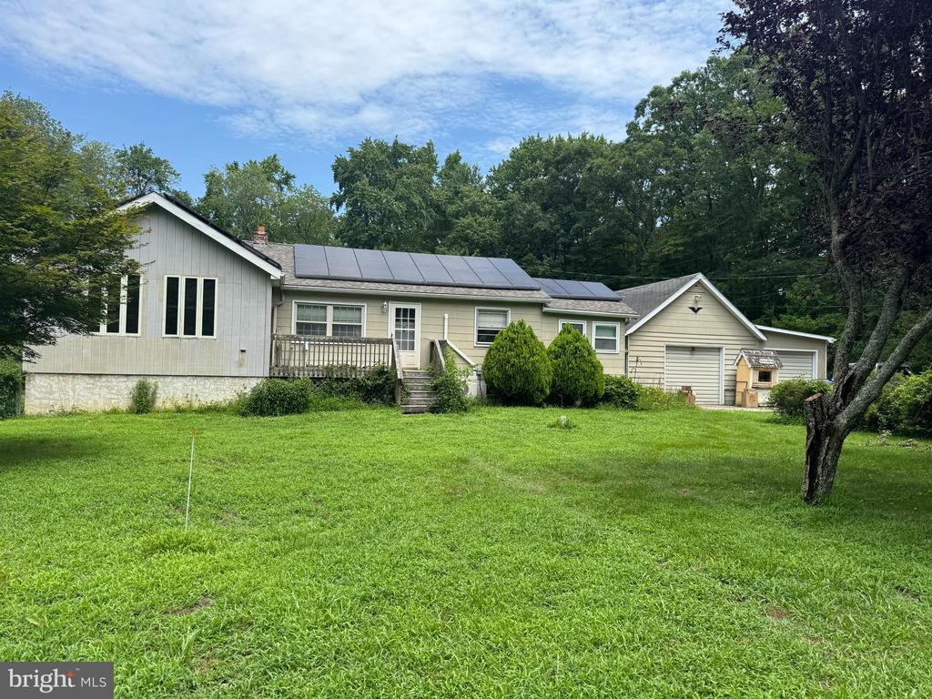 Escape to the peace and quiet of country living in this charming 2-bedroom, 1-bath home, perfectly nestled in a serene rural setting. Enjoy morning coffee or evening sunsets on the expansive deck, ideal for entertaining, relaxing, or taking in the surrounding natural beauty. Inside, you’ll find a warm and inviting layout with comfortable living spaces. Master bedroom has hardwood floors and wood cathedral ceiling. Large living room with wood burning stove surrounded by red brick walls. The full basement offers endless possibilities, New waterproof seal—storage, a workshop, or any other extra space ideas you may have. Home has solar panels to help with electricity bills. ($103 month) Home also has generator fuse box with outdoor hook-up. Whether you’re looking for a weekend getaway, starter home, or a place to downsize in comfort, this property offers the perfect blend of privacy and potential. Don’t miss this opportunity to enjoy the simple pleasures of country living! Property being sold in "AS-IS" condition. All Certs and C.O. are the responsibility of the buyer.
