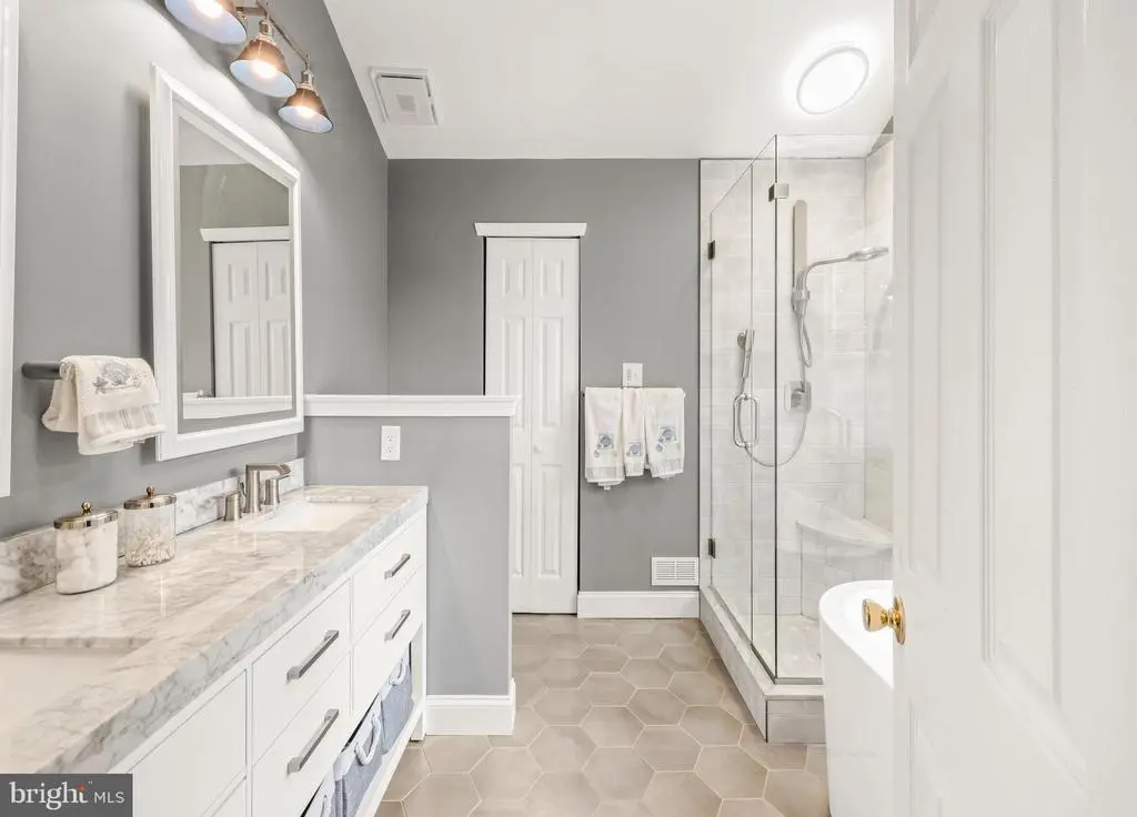 The kitchen features ceramic tile flooring, granite countertops, stainless steel appliances (refrigerator less than 5 years old), and modern lighting—perfect for both everyday living and entertaining. Upstairs, you’ll find three generously sized bedrooms, a full hall bath (freshly painted), and a convenient laundry room (washer is just 2 years old). The luxurious primary suite includes a stunning newly renovated en-suite bath (2024) with a freestanding soaking tub with Jacuzzi jets and ambient lighting, a sleek Wi-Fi enabled light, fan, and music system, and touch-activated illuminated vanity mirrors-creating a true spa-like escape. Enjoy the outdoors with professionally landscaped grounds, a sprinkler system, freshly painted trim (2024) and a tranquil end-unit setting. Major updates include a 5-year old roof and a 2-year old A/C unit offering peace of mind for years to come. The community is centered around the Valleybrook golf course and country club, offering a beautiful backdrop and recreational opportunities for residents. You’ll also enjoy maintenance-free lawn care and a host of community amenities, including a pool, pickle ball, tennis, and basketball courts-ideal for an active and social lifestyle. Valleybrook is close to shopping, dining, entertainment, and major highways like Route 42, providing easy access to Philadelphia, the Jersey Shore, and other nearby areas. Valleybrook offers a desirable combination of amenities, location, and community atmosphere, making it a top choice for many looking to live in South Jersey.