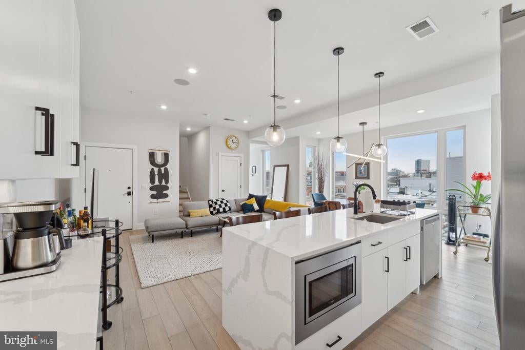 Located in the heart of Francisville, this stunning 2 bedroom, 2 bathroom luxury condo offers roughly 1,600 sq ft of contemporary living space with high-end finishes, 1 car private parking and an unbeatable private rooftop deck with breathtaking Center City skyline views. The open concept design is flooded with natural light from oversized windows, highlighting the wide plank hardwood floors and sophisticated details throughout. The gourmet eat-in kitchen boasts a quartz waterfall island, custom cabinetry, stainless steel appliances, gas range, and stylish pendant lighting, seamlessly flowing into the spacious living and dining areas, perfect for entertaining. The primary suite is a true retreat, featuring a custom walk in closet and a spa like en-suite bathroom with a double vanity, oversized glass enclosed rainfall shower, and sleek matte black fixtures. The second bedroom is equally bright and versatile, ideal for guests or a home office. Both bathrooms are elegantly designed with modern finishes and ample storage. A true highlight of this home is the massive private rooftop oasis, which spans the entire footprint of the building—offering an additional 1,600 sq. ft. of outdoor living space. This unparalleled rooftop deck is perfect for relaxing, entertaining, or hosting unforgettable gatherings, complete with a dry bar and panoramic city views. Additional conveniences include in-unit laundry and 1 car private parking attached to the building. With 7 years remaining on the tax abatement, this 3 year old home is a rare find in a prime location, just steps from Fairmount Ave, coffee shops, top restaurants and public transportation. Do not miss this opportunity to own a stunning, move in ready home in one of Philadelphia’s most sought after neighborhoods!