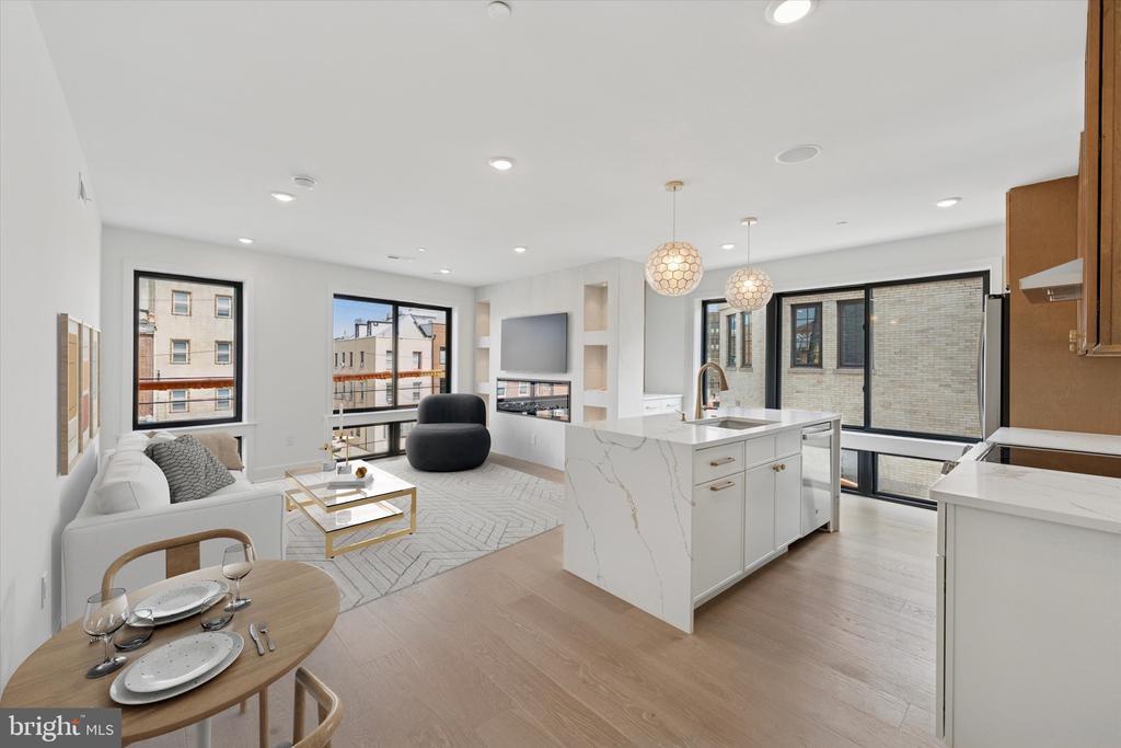 Welcome to this stunning brand-new construction corner property in the desirable Bellavista neighborhood of Philadelphia. Beautifully designed and offering modern luxury and spacious living. This top unit is three-bedrooms and three-bathrooms. Upon entering the living room the abundance of natural light throughout the home is undeniable. Bright and airy atmosphere, perfect for everyday living. The spacious layout is ideal for entertaining, with high-end finishes and plenty of room to relax. A beautifully designed wet bar leads the way as you go to the large roof deck offering breathtaking skyline views—another ideal space for outdoor entertaining or unwinding. The master bathroom in this unit is equally expansive and luxurious. Custom closets in each bedroom, top-tier finishes, combining style and functionality...this home truly has it all. The condo fee includes water and insurance