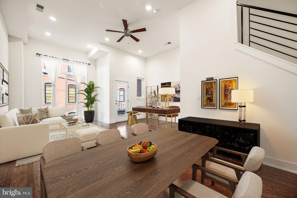 Discover luxury living in this stunning 2-bedroom, 2-bathroom home offering a beautifully finished open-concept floor plan, complete with private garage parking and garage door opener included for your convenience. Built in 2022, this sophisticated home still has over 6 years of tax abatement remaining and features soaring 12-foot ceilings, elegant wood-grain floors, and a private rooftop deck with panoramic city views - perfect for relaxing or entertaining year-round. The gourmet eat-in kitchen is a chef’s dream with upgraded soft-close cabinetry, designer backsplash, gleaming quartz countertops, a breakfast bar for additional dining, and stainless steel appliances, including a double-door fridge, gas range, built-in microwave, and dishwasher. The kitchen opens to a spacious dining area and sun-filled grand living room, with oversized windows that flood the space with natural light. The second level offers a comfortable bedroom with three closets, a full bathroom with a tub/shower combo, and a large laundry area featuring side-by-side front-loading machines. The third floor is your private retreat. The primary suite includes a large walk-in closet, a linen closet, private balcony, and a luxurious bath with double vanity, spa-inspired walk-in shower, and beautiful tile finishes. From the primary suite, head up to your expansive rooftop deck - a spectacular space for lounging, dining, and enjoying city views from sunrise to sunset. This luxurious new construction townhome is in the South Liberty Triangle community in the heart of Northern Liberties within walking distance to the shopping and restaurants on North Second Street, the ACME grocery store, Fine Wine & Spirits, Petco, as well as the luscious green park at Liberty Lands. Just a short walk to view the Delaware River. This location is fantastic! Come and take a tour! Please note, some photos are virtually staged.