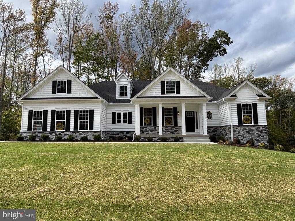 IMMEDIATE DELIVERY! Move-in Ready. One-story living at its best. You could be in a brand new home before the holidays! Welcome to Quality Built Home's popular BRENTWOOD house style! Situated on the last lot in Phase 4 in Oakwood Estates, this Brentwood boasts the first front porch elevation in the neighborhood. Outdoor living continues on the extended rear deck that overlooks a private wooded back yard. Inside, relax with friends and family in this home's large, open kitchen and family room, replete with a cozy gas fireplace. The kitchen features painted maple cabinets, quartz countertops, and stainless steel appliances. Find refuge in the primary suite, including access to the rear deck, large bedroom, a soaking tub, walk-in shower and an oversized walk-in closet. Needing to get some work done? Just a quick walk downstairs is an office and additional bathroom adjacent to a large, finished rec room that is just begging for something fun to fill it. The neighborhood includes a community pool, clubhouse, tennis courts, and a playground. As if that's not enough, Oakwood Estates is conveniently located near Dahlgren naval base, Southern Maryland, and Fredericksburg. Welcome Home!
