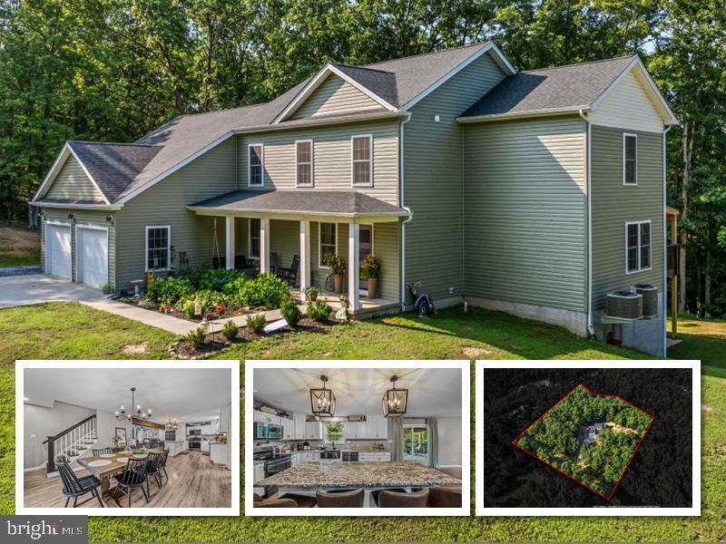 Discover the perfect blend of comfort, privacy, and functionality in this well-maintained 4-bedroom home with a versatile 14x14 bonus room on the upper level. The owner's currently use the bonus room as a 5th bedroom. This home features 3,543 square feet of finished living space including 2.5 bathrooms, separate laundry room and partially finished basement. Situated on 5 wooded acres in scenic Gerrardstown, West Virginia, this custom-built modern farmhouse offers a peaceful retreat with convenient access to major commuter routes. Built in 2021, the thoughtfully designed layout features an open-concept main level with a spacious kitchen, large dining area, and a hidden 7x10 walk-in pantry—ideal for storage and organization. The main-level suite includes a spacious bath with spa-inspired finishes, providing a relaxing escape at the end of the day. The partially finished walkout basement offers 351 sq. ft of additional living space that can be tailored for recreation, home gym, office use, or hobbies. With over 3,500 finished sq. ft., this home provides flexibility and room to grow. Outdoor living is a highlight, featuring a 16x16 covered deck and a lower-level patio, both ideal for enjoying the natural surroundings. The acreage includes a wet-weather stream and plenty of room for recreational equipment, garden space, or quiet wooded exploration. The 3 garage bays offers plenty of room to store vehicles and large toys. Located just 13 miles from I-81, 8.5 miles from Inwood, 13 miles to Martinsburg, and 22 miles to Winchester, VA, this property delivers the best of both worlds—peaceful country-style living with easy access to shopping, dining, and commuter routes.